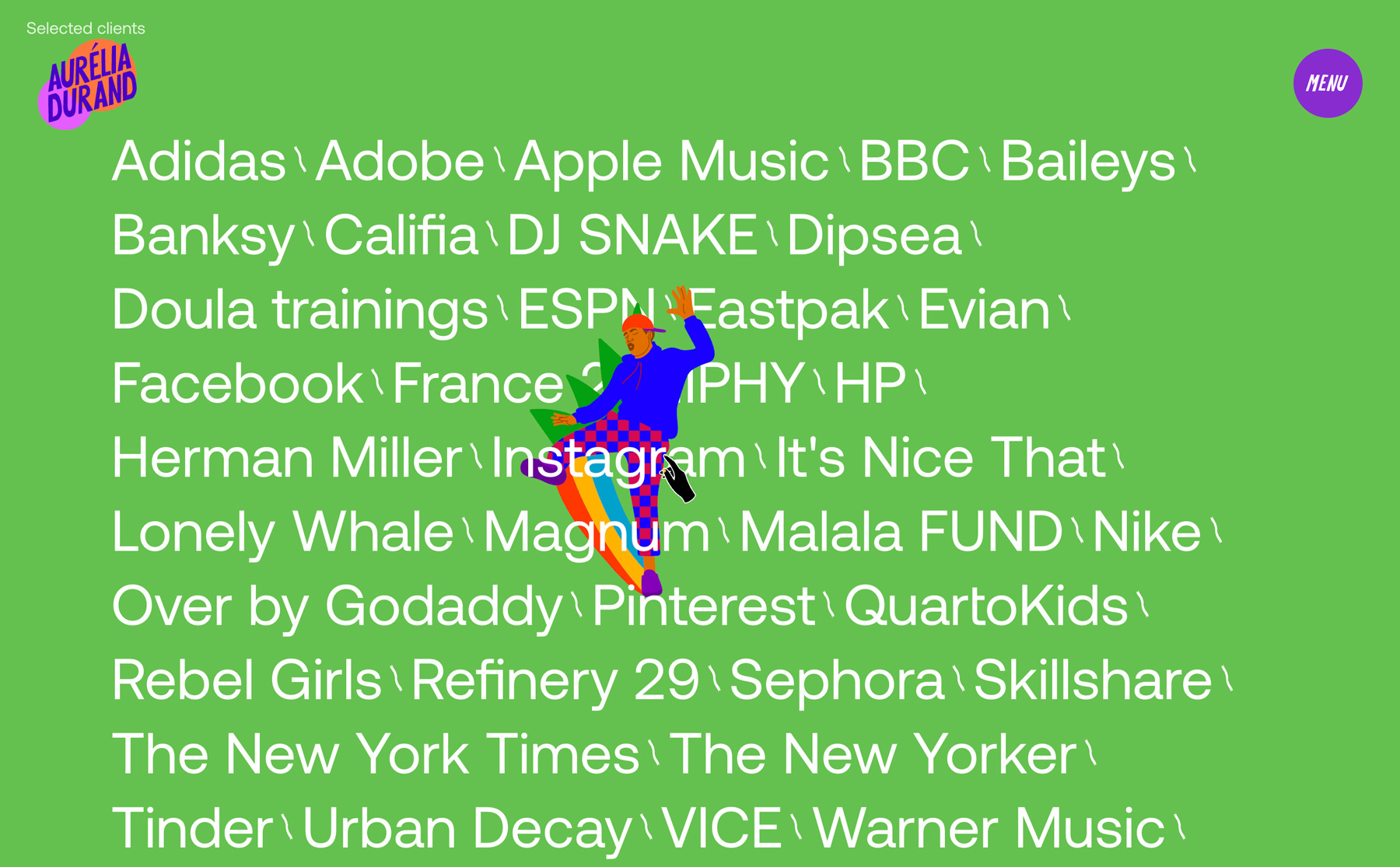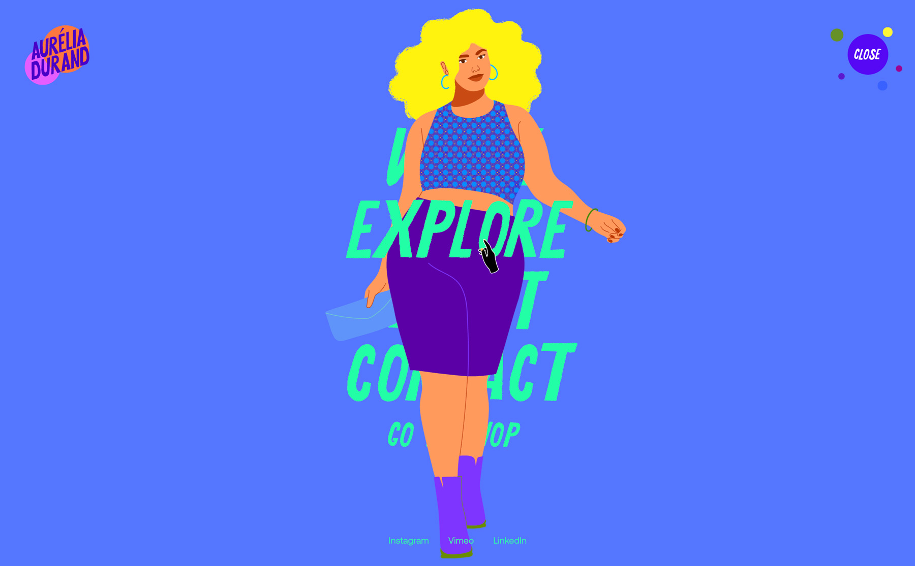 Aurélia Durand is a young illustrator based in Copenhagen. Through vivid colors, powerful statements, and sassy playfulness, she aims to celebrate her afro-descendants and empower people to believe in themselves. Making her art come alive on a website has been a translation task. But by zooming in on or magnifying details and making her characters dance around on the pages, we've created a universe that can't help but make its visitors smile. And that's what Aurélia Durand is all about.