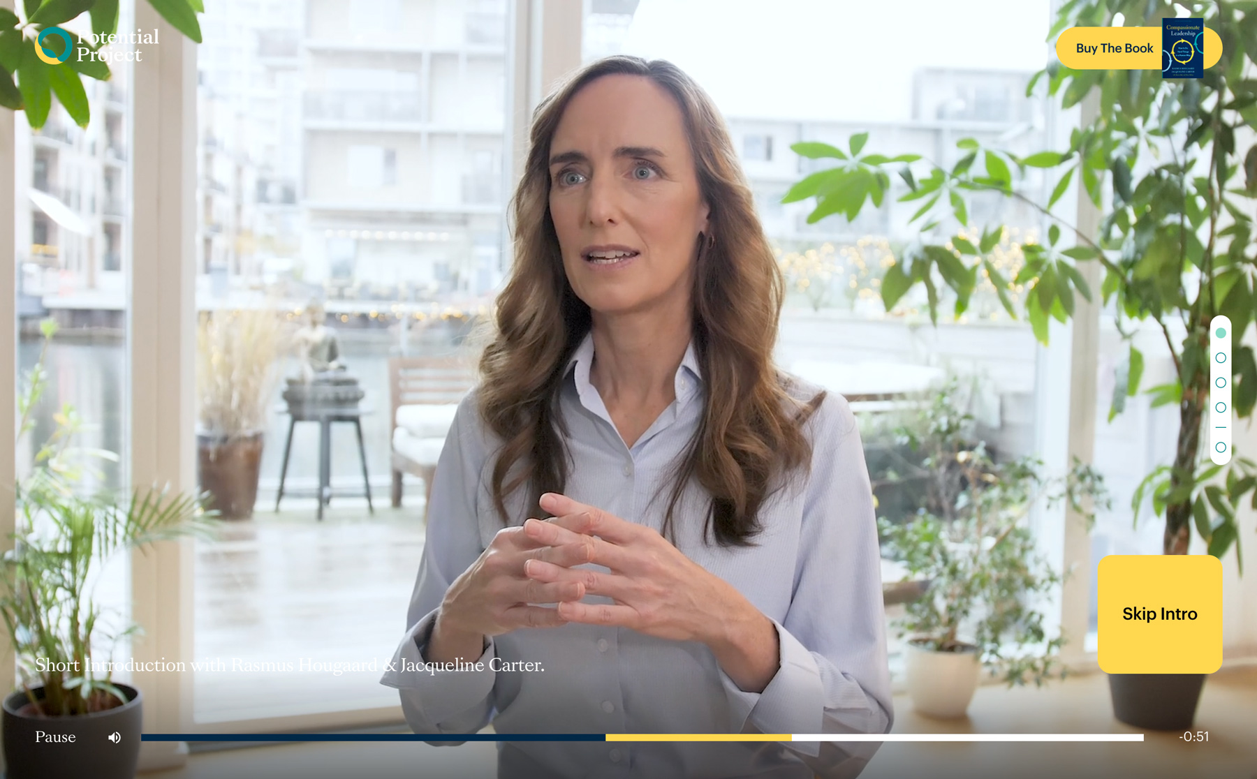 Together with Potential Project, we came up with an idea for a campaign page carried by film interviews with two of the authors. In the films, CEO and Founder of Potential Project, Rasmus Hougaard, and International Partner Jacqueline Carter, give the viewers tools and insights to begin a journey towards a more compassionate and wise way to lead. The short films function as parts of a fluent, parallax experience on a responsive website designed and implemented in Webflow.