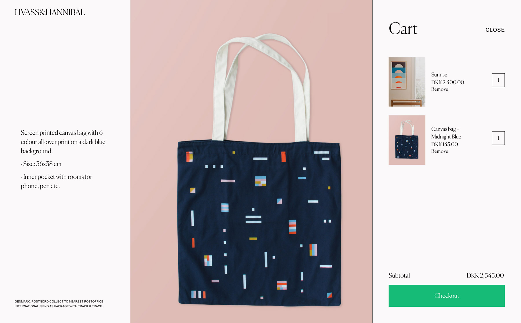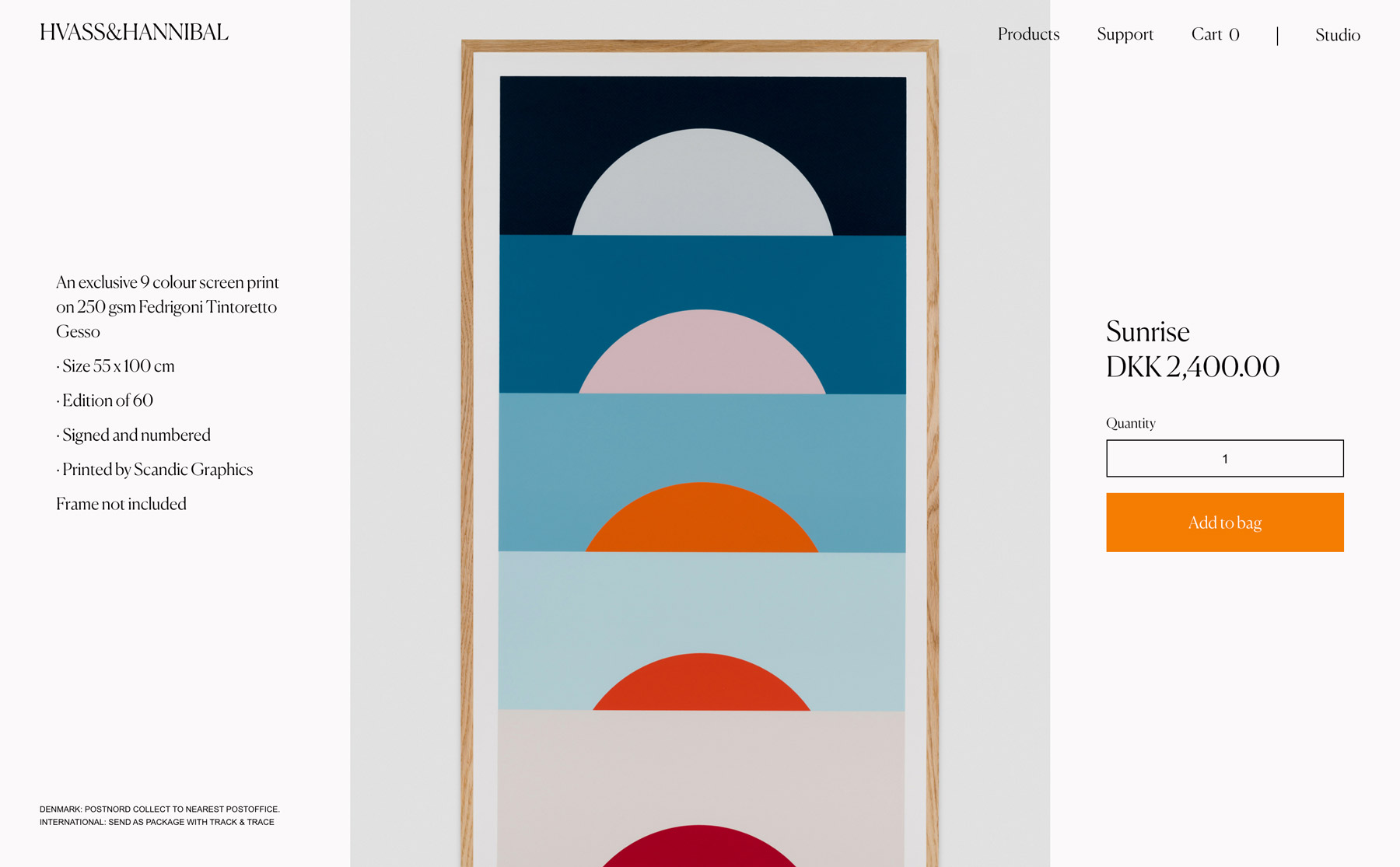 Hvass&Hannibal sell prints of their distinctive artwork. And with their new webshop, the experience fromt browsing their archive continues in a custom-made check-out flow.