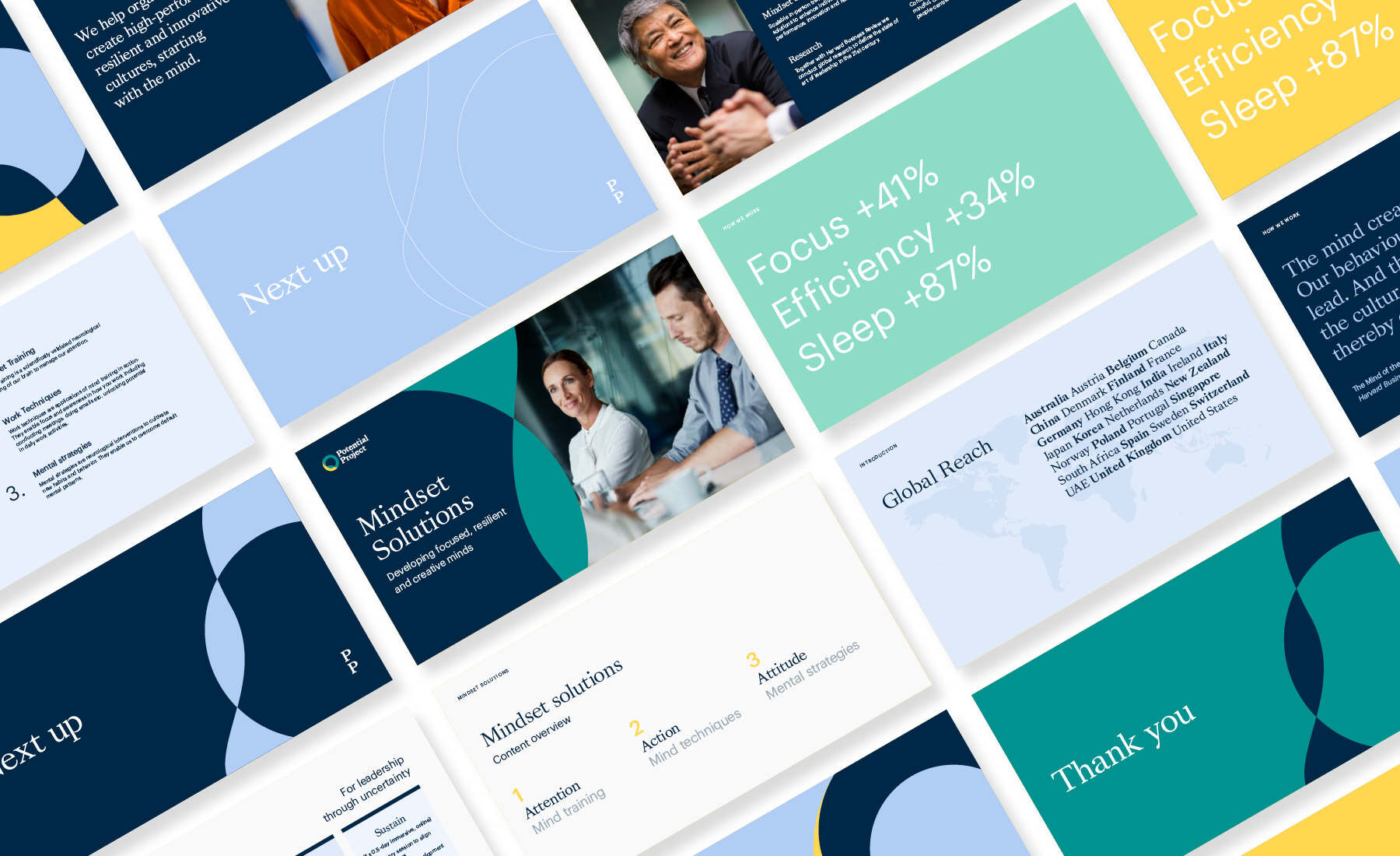 Potential Project is a global consulting and professional services firm that partners with organizations to create a more human world of work enabled by unleashing the mind's potential. Through mindfulness, they strive for a world with more humanity, kindness, and opportunity for real people to be the best version of themselves – at work and in life. Potential Project approached us with the wish to upgrade their identity, redefine their purpose, and give them a digital presence that reflects who they are as a company.