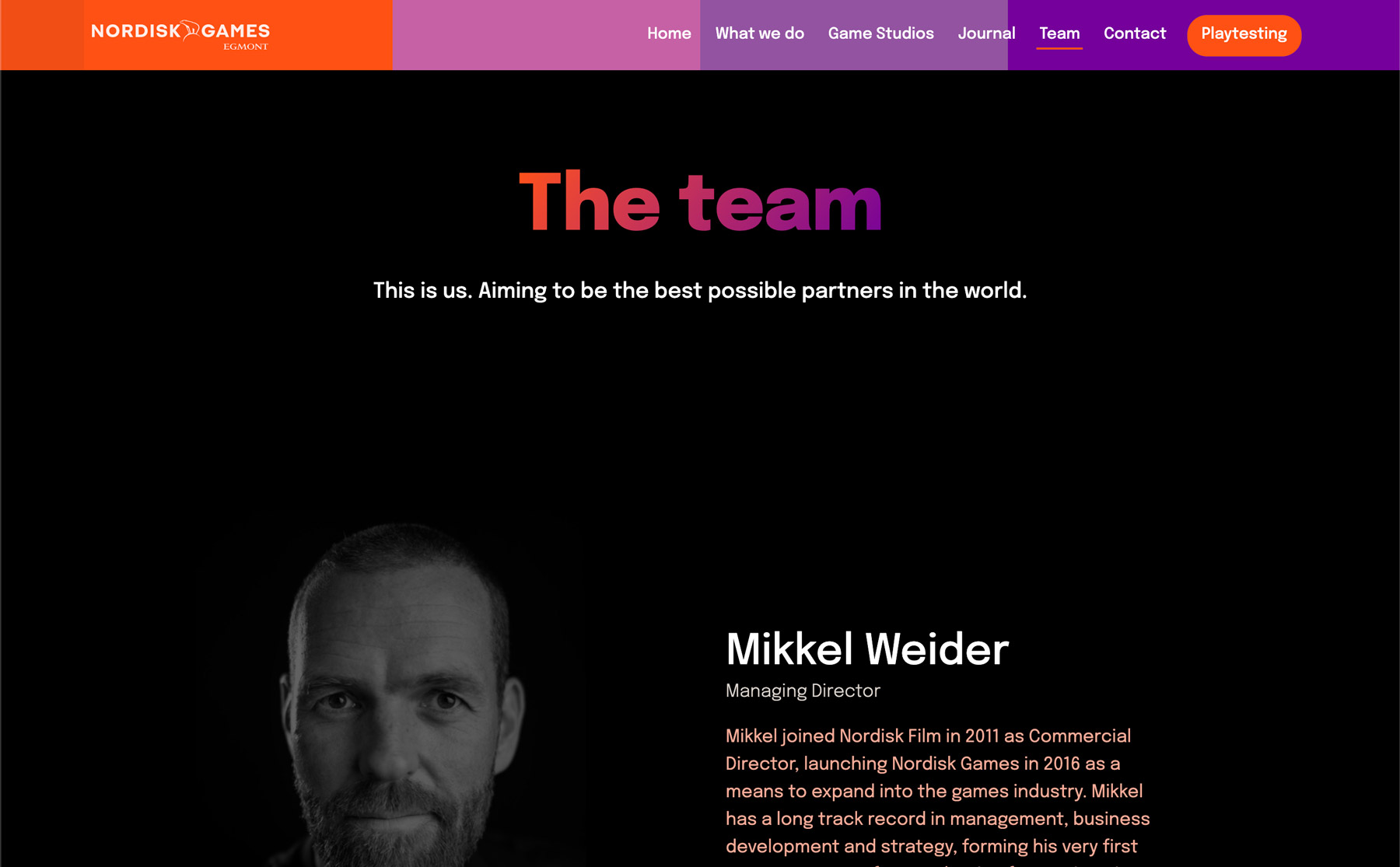 Nordisk Games wants to actively support the rapid development of the global game industry by funding and supporting game developers. But a good investment doesn’t cut it. They are in it for the long haul and their agenda is to build great games studios that create great games. They make equity investments and want to empower the founders and ensure that they are in control of their own destiny and have their own voice.
