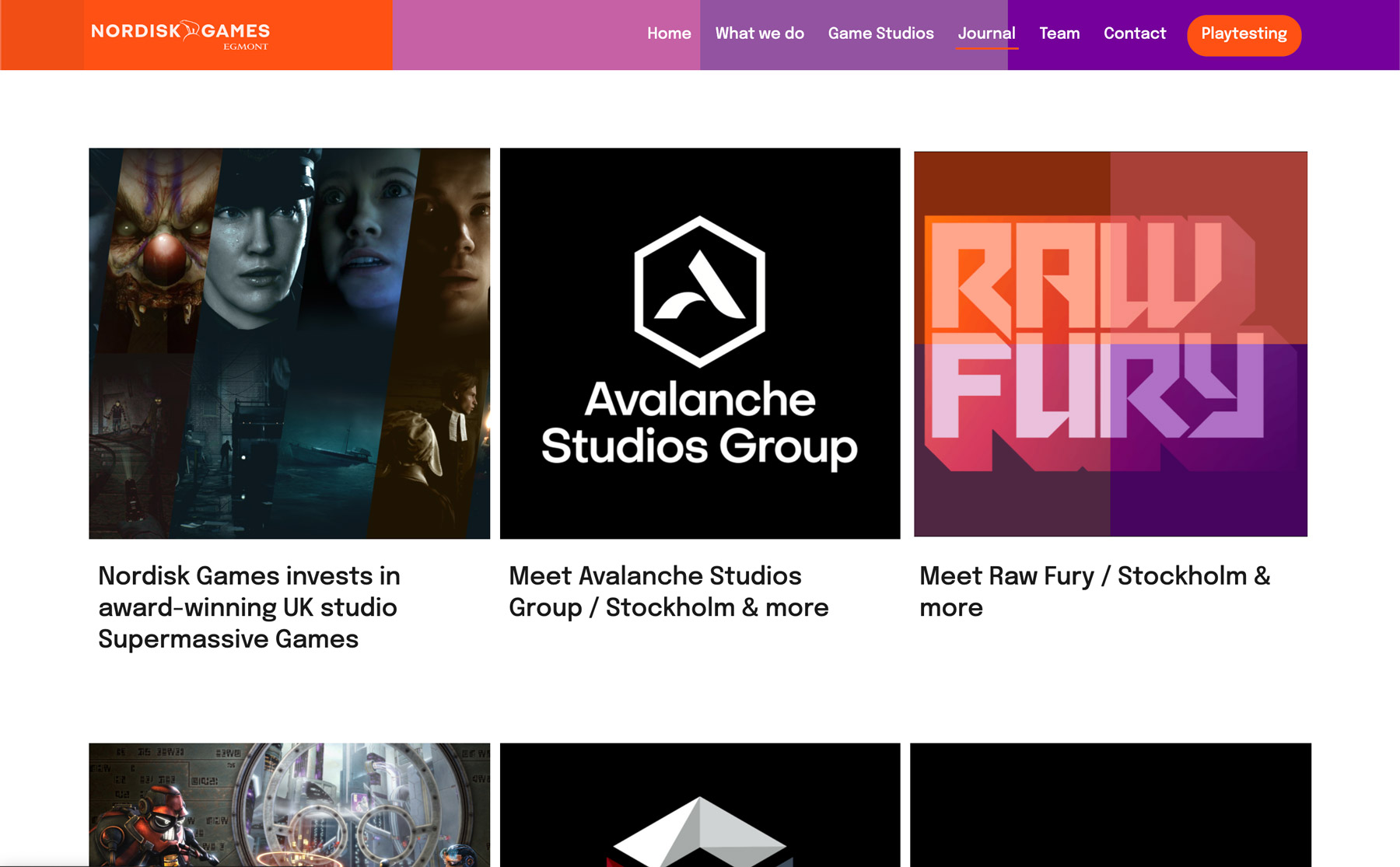 In order to reach more awareness on the market, they came to us with a wish for a new visual identity and a new website. They wanted a digital experience, showcasing the many different games and universes represented by the game studios.