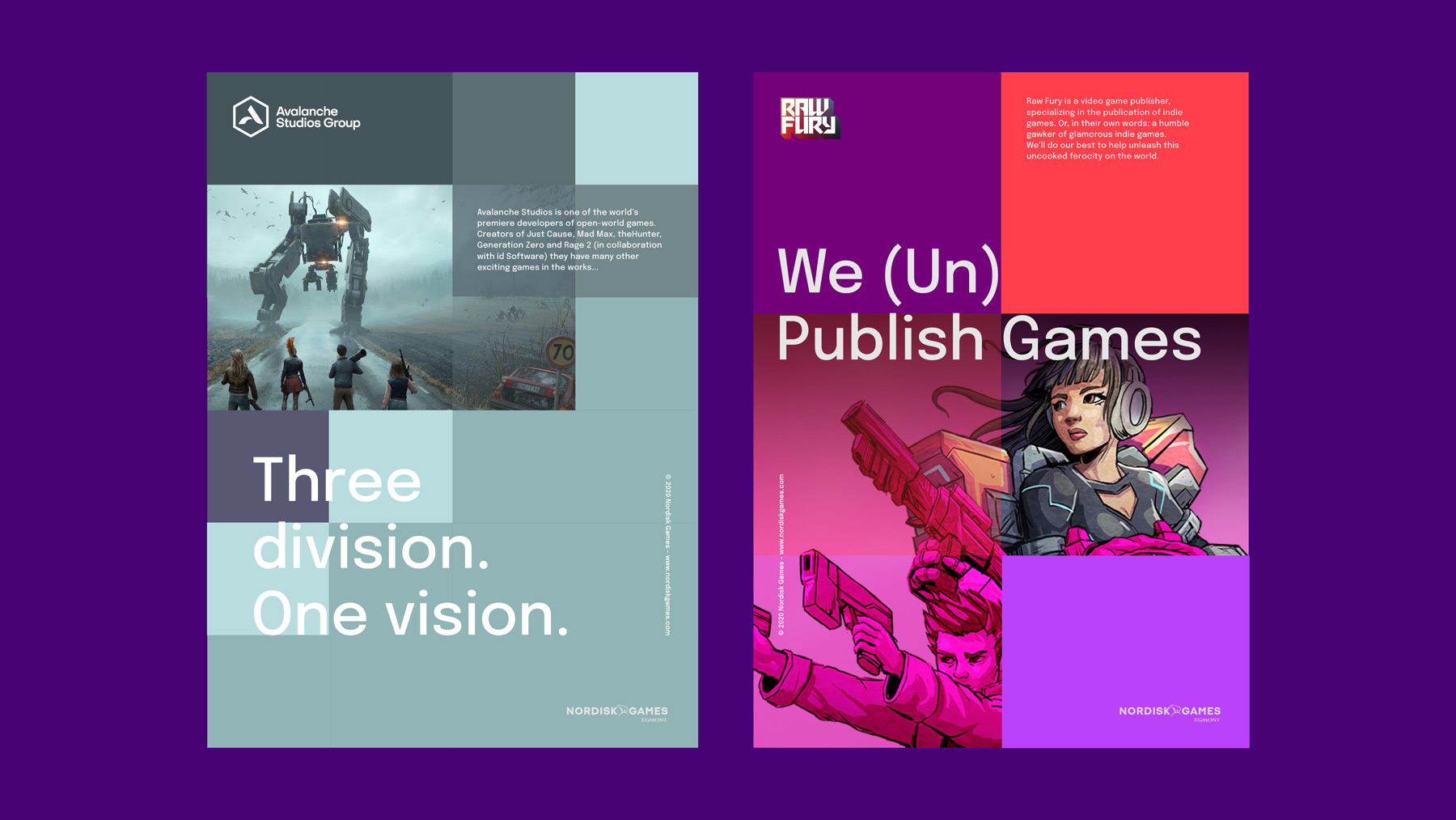 Nordisk Games wanted a brand identity that visually could handle all the games and game studios they represent, while it also gave off a strong expression in more corporate situations, communicating control and professionalism.