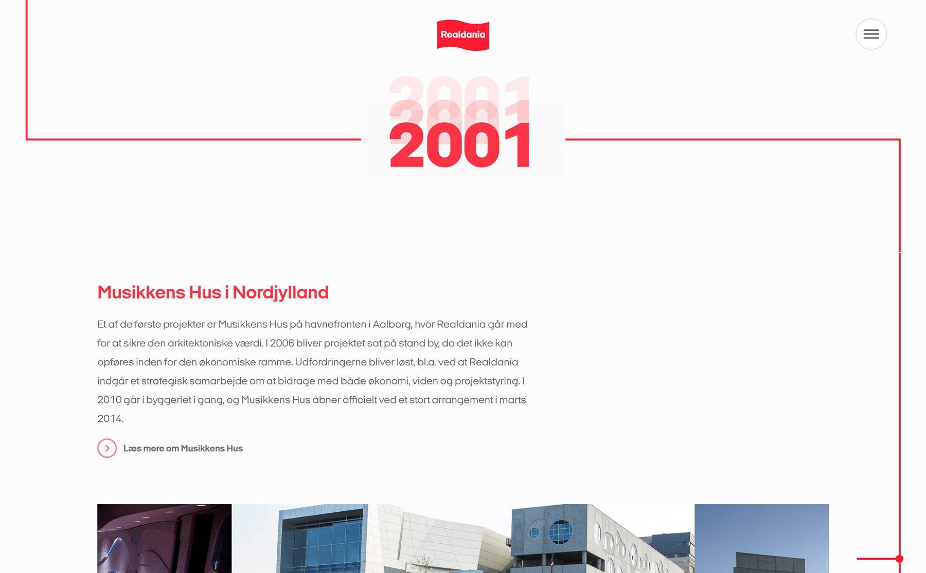 In 2000, the Danish philanthropic association Realdania was founded to increase the quality of life through the built environment. Over the years, they have provided financial support to countless projects that have created value for the people who used them. To celebrate 20 years of Realdania, they wanted to tell their story with an interactive timeline that lets users explore the diversity and quality of their many projects. The result? A dynamic, light experience that frames the first twenty years of their existence.